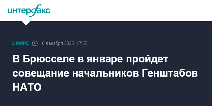 Москва. 18 декабря. INTERFAX.RU - Высший военный орган НАТО - Военный комитет - соберется 21-22 января 2026 года в Брюсселе на уровне начальников генеральных штабов, объявил Североатлантический альянс.