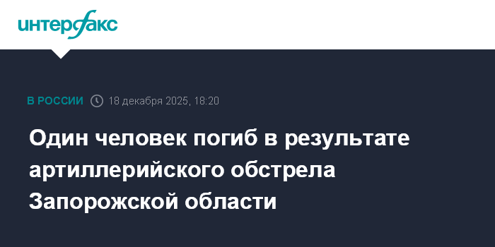 Один человек погиб в результате артиллерийского обстрела Запорожской области