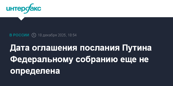 Москва. 18 декабря. INTERFAX.RU - Президент Владимир Путин пока не определился с точными сроками послания Федеральному собранию, заявил телеканалу "Россия 24" его пресс-секретарь Дмитрий Песков.