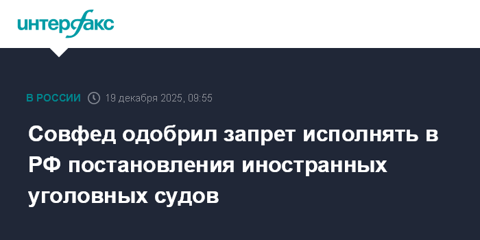 Совфед одобрил запрет исполнять в РФ постановления иностранных уголовных судов