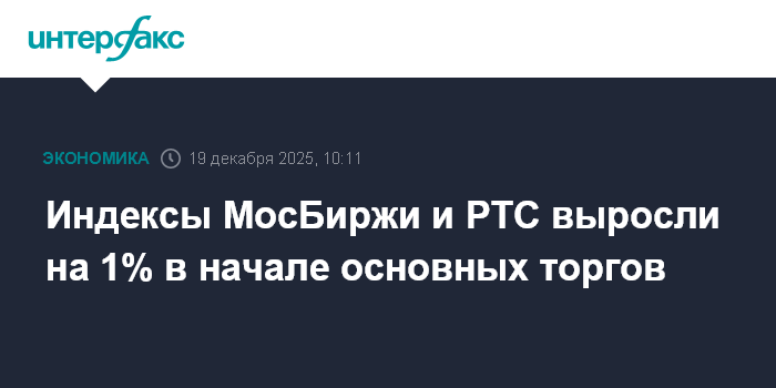 Индексы МосБиржи и РТС выросли на 1% в начале основных торгов