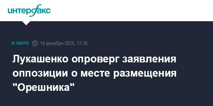 Москва. 19 декабря. INTERFAX.RU - Президент Белоруссии Александр Лукашенко назвал враньем информацию оппозиции о месте размещения российского ракетного комплекса "Орешник".