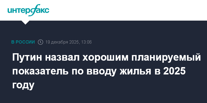 Москва. 19 декабря. INTERFAX.RU - Президент России Владимир Путин считает "хорошим" планируемый показатель по вводу жилья в стране по итогам 2025 года. Он сказал об этом на прямой линии.