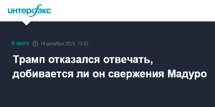 Москва. 19 декабря. INTERFAX.RU - Президент США Дональд Трамп не стал отвечать на вопрос NBC о том, добивается ли он свержения президента Венесуэлы Николаса Мадуро.