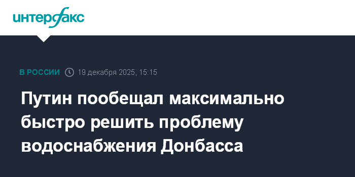 Москва. 19 декабря. INTERFAX.RU - Решение проблемы водоснабжения Донбасса нужно решить как можно быстрее, заявил на прямой линии президент Владимир Путин.
