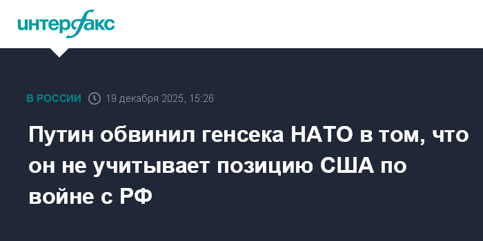 Москва. 19 декабря. INTERFAX.RU - Президент РФ Владимир Путин обвинил генерального секретаря НАТО Марка Рютте в том, что он не считается с позицией главной страны альянса - США - в вопросе угрозы со стороны России.