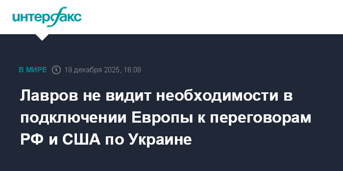 Москва. 19 декабря. INTERFAX.RU - Россия ведет диалог с США по украинскому урегулированию, не видит необходимости в подключении Европы к переговорному процессу с учетом ее нынешней позиции, заявил глава МИД РФ Сергей Лавров.