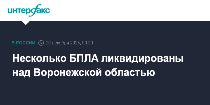 Москва. 20 декабря. INTERFAX.RU - Губернатор Воронежской области Александр Гусев сообщил о ликвидации нескольких беспилотников в небе над регионом.