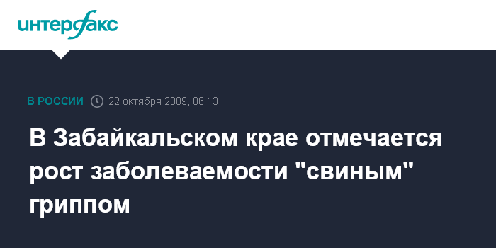Чита. 22 октября. ИНТЕРФАКС-СИБИРЬ - В Забайкальском крае зарегистрировано 145 фактов заражения вирусом A/H1N1.