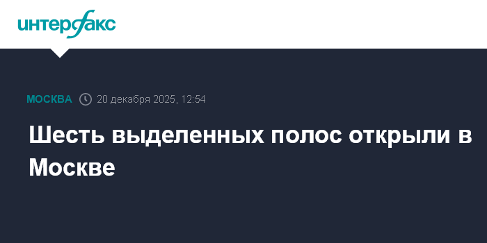 Москва. 20 декабря. INTERFAX.RU - Шесть новых выделенных полос появились в столице в субботу, сообщили в департаменте транспорта Москвы.