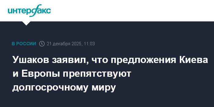 Ушаков заявил, что предложения Киева и Европы препятствуют долгосрочному миру