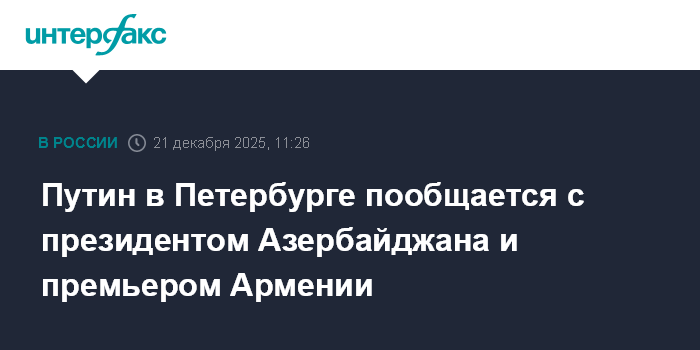 Путин в Петербурге пообщается с президентом Азербайджана и премьером Армении