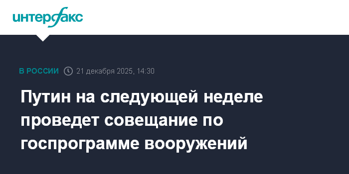 Москва. 21 декабря. INTERFAX.RU - Президент РФ Владимир Путин на будущей неделе проведет совещание по госпрограмме вооружений, а также Госсовет по кадрам.