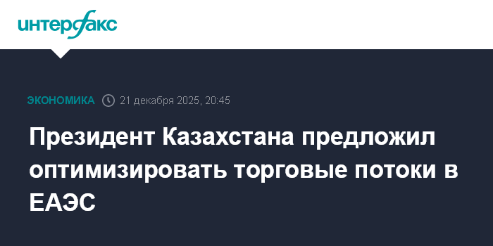Москва. 21 декабря. INTERFAX.RU - Президент Казахстана Касым-Жомарт Токаев предлагает оптимизировать торговые потоки в Евразийском экономическом союзе (ЕАЭС).