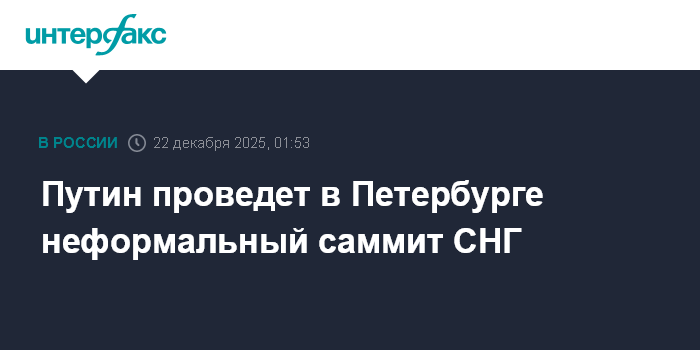 Москва. 22 декабря. INTERFAX.RU - Президент РФ Владимир Путин в пятницу в Санкт-Петербурге проведет неформальную встречу с главами стран СНГ.