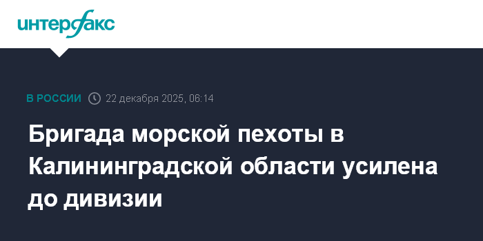Москва. 22 декабря. INTERFAX.RU - Бригада морской пехоты Балтийского флота России переформирована в дивизию, следует из сообщения пресс-службы флота.