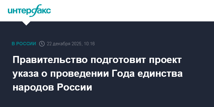Москва. 22 декабря. INTERFAX.RU - Президент Владимир Путин поручил правительству представить проект указа главы государства о проведении в 2026 году Года единства народов России.