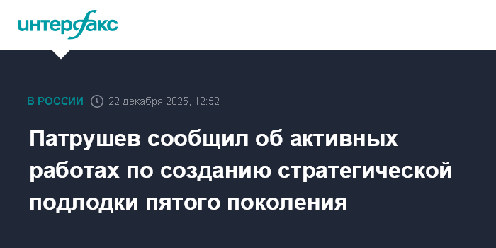 Патрушев сообщил об активных работах по созданию стратегической подлодки пятого поколения