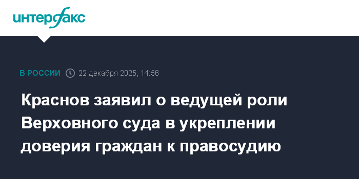 Москва. 22 декабря. INTERFAX.RU - Председатель Верховного суда России Игорь Краснов обозначил приоритеты в работе судей и сотрудников аппарата Верховного суда, отметив укрепление доверия граждан к правосудию и эффективное функционирование всей судебной системы.