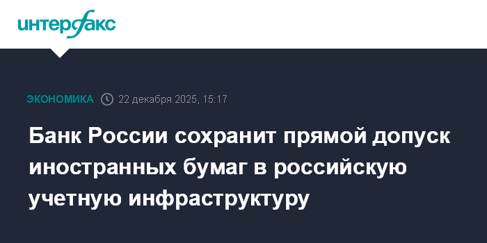 Банк России сохранит прямой допуск иностранных бумаг в российскую учетную инфраструктуру