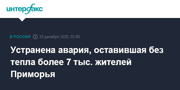 Устранена авария, оставившая без тепла более 7 тыс. жителей Приморья
