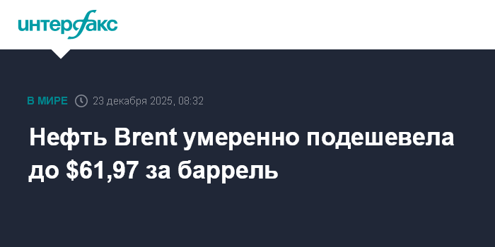 Нефть Brent умеренно подешевела до $61,97 за баррель