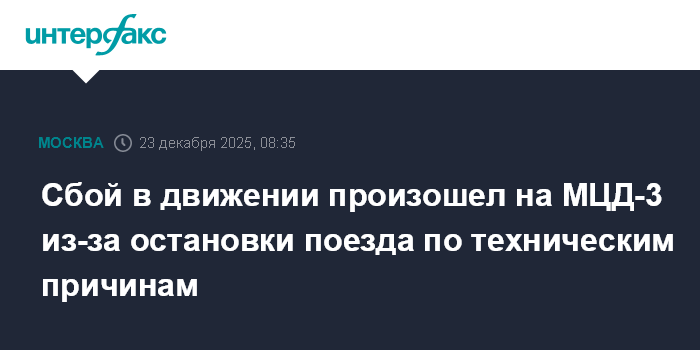 Москва. 23 декабря. INTERFAX.RU - Поезда Казанского направления и третьей линии Московских центральных диаметров (МЦД-3, D3) идут с задержкой в связи с незапланированной остановкой по технической причине состава на станции "Перово", сообщили в столичном департаменте транспорта.
