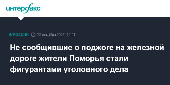 Не сообщившие о поджоге на железной дороге жители Поморья стали фигурантами уголовного дела