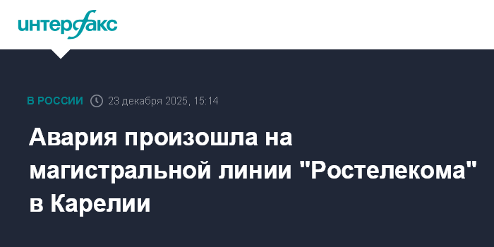 Авария произошла на магистральной линии "Ростелекома" в Карелии