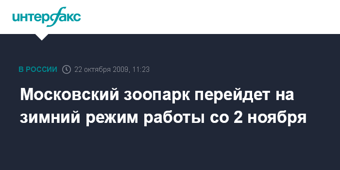 Москва. 22 октября. INTERFAX.RU - Столичный зоопарк перейдет на зимний режим работы и будет закрываться на час раньше со 2 ноября, сообщили "Интерфаксу" в пресс-службе зоопарка в четверг.