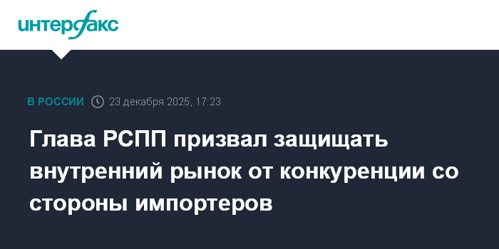 Глава РСПП призвал защищать внутренний рынок от конкуренции со стороны импортеров