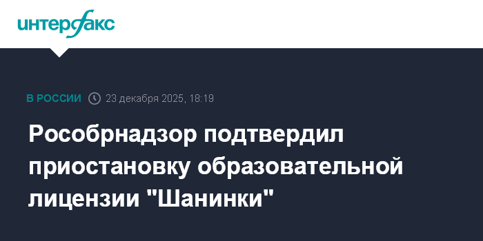 23 апреля Рособрнадзор запретил "Шанинке" принимать студентов в течение года, обвинив организацию в неустранении выявленных в ноябре 2024 года нарушений.