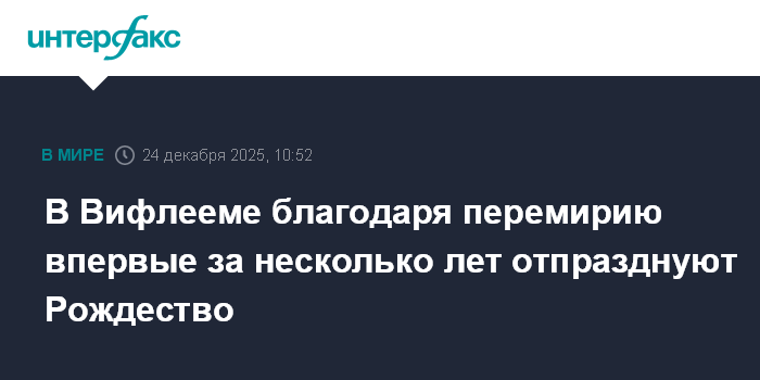 Москва. 24 декабря. INTERFAX.RU - Праздничные мероприятия пройдут в Вифлееме впервые с начала вооруженного конфликта в секторе Газа в 2023 году, сообщают ближневосточные СМИ.