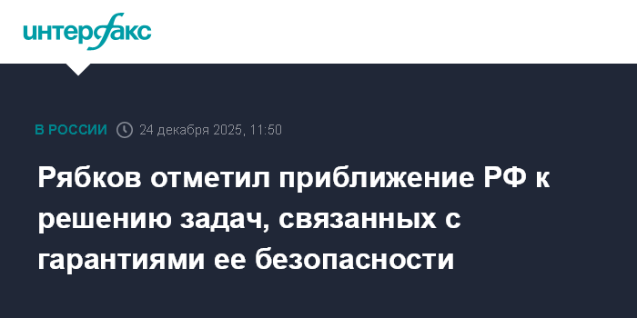 Москва. 24 декабря. INTERFAX.RU - Российская Федерация ближе к решению задач, связанных с гарантиями ее безопасности, чем раньше, заявил замглавы МИД РФ Сергей Рябков.