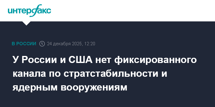 Москва. 24 декабря. INTERFAX.RU - У Москвы и Вашингтона нет фиксированного канала для контактов по стратегической стабильности, ядерным вооружениям, заявил "Интерфаксу" замглавы МИД Сергей Рябков.