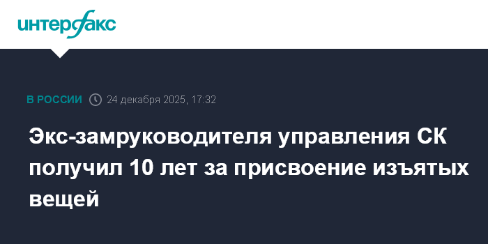 Экс-замруководителя управления СК получил 10 лет за присвоение изъятых вещей