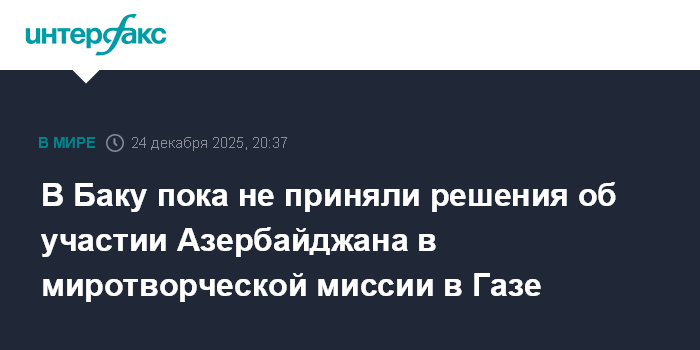 В Баку пока не приняли решения об участии Азербайджана в миротворческой миссии в Газе