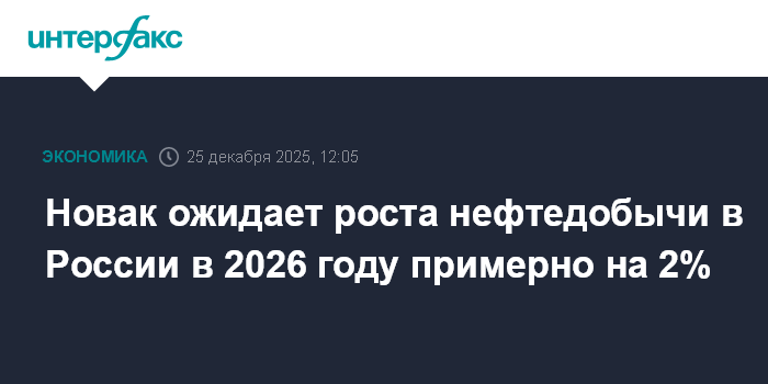 "В этом году мы выйдем на уровень добычи (нефти - ИФ) примерно как в 2024 году - 516 млн тонн. На 2026 год у нас заложен рост примерно на 2% в соответствии прогнозом социально-экономического развития - 525 млн тонн", - сказал Новак.