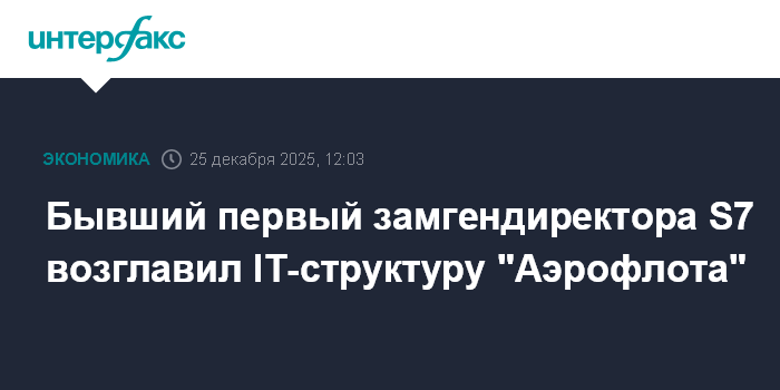 Москва. 25 декабря. INTERFAX.RU - Бывший первый заместитель гендиректора по информационным технологиям S7 Group Руслан Верещагин возглавил IT-структуру "Аэрофлота" - ООО "АФЛТ-Системс".