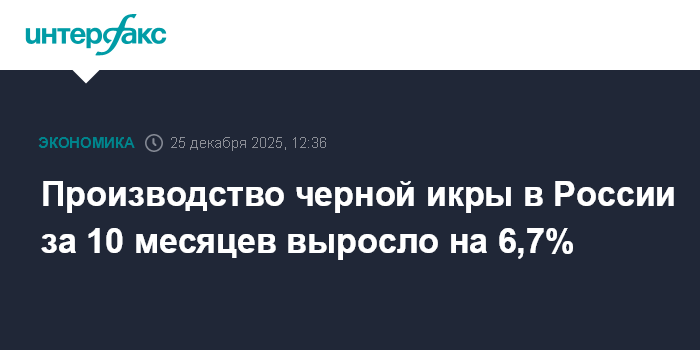 Производство черной икры в России за 10 месяцев выросло на 6,7%