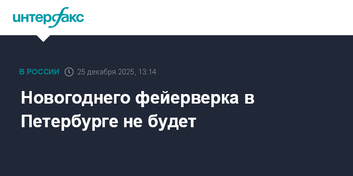 Москва. 25 декабря. INTERFAX.RU - Фейерверка в ночь на 1 января в Петербурге не будет, заявил начальник отдела по вопросам организации антитеррористической защищенности публичных и массовых мероприятий городского комитета по вопросам законности Александр Равин.