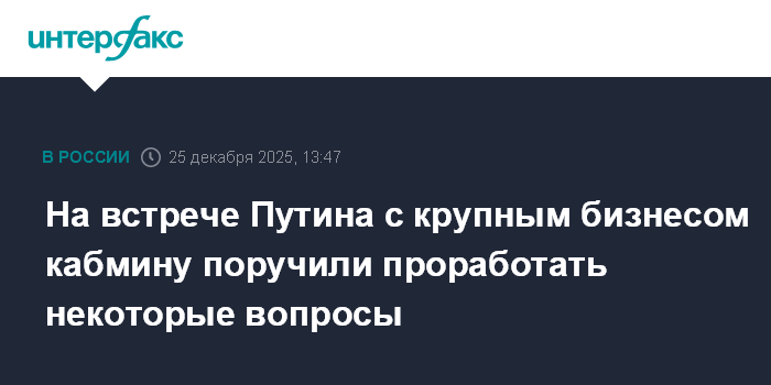 На встрече Путина с крупным бизнесом кабмину поручили проработать некоторые вопросы