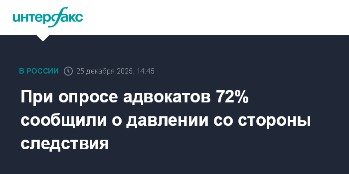 При опросе адвокатов 72% сообщили о давлении со стороны следствия