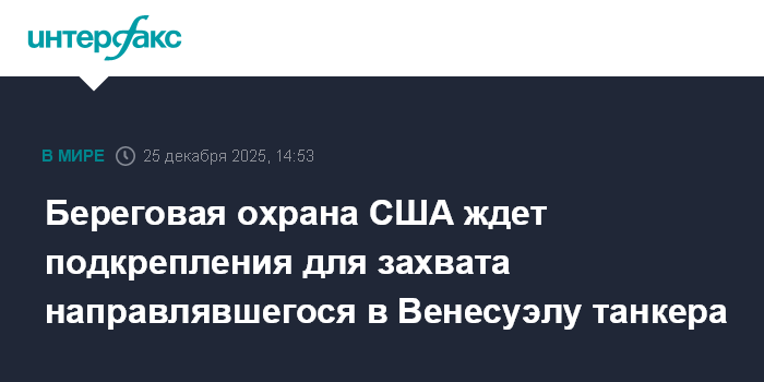 Береговая охрана США в настоящее время ожидает прибытия специализированных групп для того, чтобы подняться на борт и захватить находящийся под санкциями нефтяной танкер, за которым она следит с воскресенья, сообщило издание со ссылкой на официальное лицо, знакомое с ситуацией. Ранее судно отказалось подчиниться требованиям Береговой охраны, оснащенной катерами, и поэтому она не смогла подняться на его борт. В настоящее время судно уже вышло из района Карибского моря и направляется на восток в Атлантике.