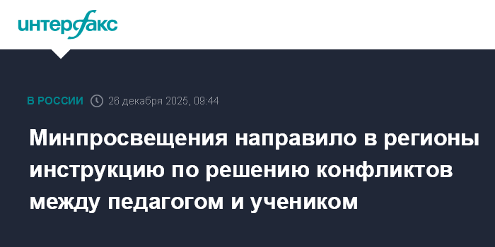 Москва. 26 декабря. INTERFAX.RU - Министерство просвещения РФ сообщило, что направило в регионы инструкции для руководителей образовательных организаций по действиям в конфликтных ситуациях между педагогами и учащимися.