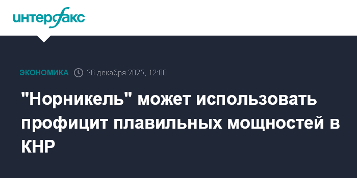 Москва. 26 декабря. INTERFAX.RU - ГМК "Норильский никель", рассматривающая варианты перевода мощностей Медного завода в Китай, планирует воспользоваться профицитом плавильных мощностей в этой стране, сообщил "России 24" президент компании Владимир Потанин.