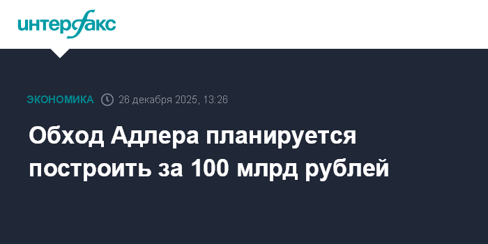 Москва. 26 декабря. INTERFAX.RU - Стоимость строительства обхода Адлера, определенная в размере 100 млрд рублей, является окончательной, заявил вице-премьер РФ Марат Хуснуллин.