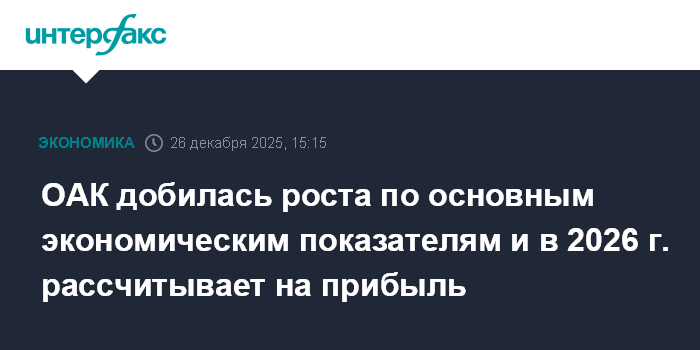 ОАК добилась роста по основным экономическим показателям и в 2026 г. рассчитывает на прибыль