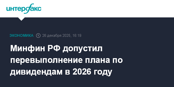 Минфин РФ допустил перевыполнение плана по дивидендам в 2026 году