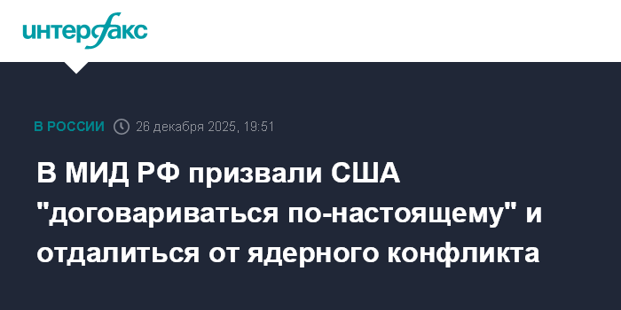 В МИД РФ призвали США "договариваться по-настоящему" и отдалиться от ядерного конфликта